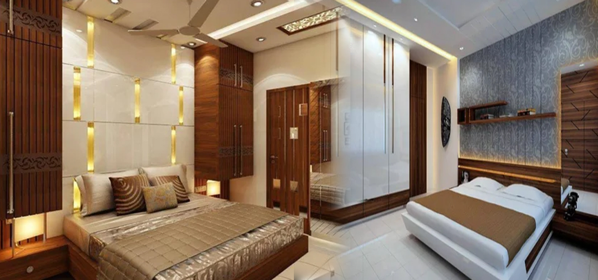 When designing the interior of a bedroom, the first step is to decide on the overall aesthetic. Consider your personal style preferences, such as colors, textures, and furniture styles. Then, choose a color palette to use throughout the room. You may want to go with neutral colors like whites, grays, and beiges, or you may opt for a bolder look with deeper colors like navy blues and purples.